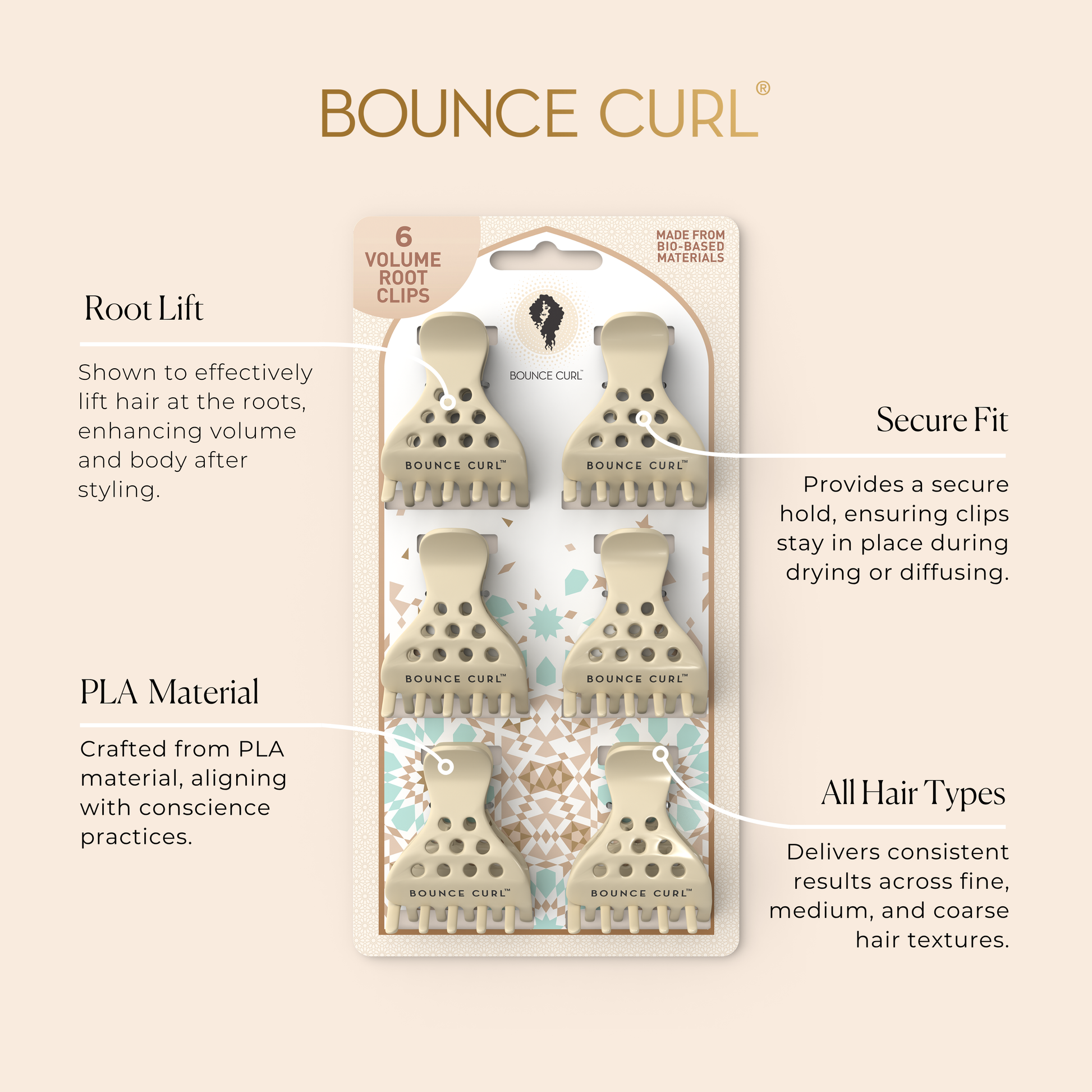 Bounce Curl Volume Root Clips offer effortless root lift and added volume with their eco PLA material. Designed to securely lift hair at the roots, they enhance body and texture without slipping or damaging hair. Suitable for all hair types, they leave your hairstyle feeling full, voluminous, and professionally styled.
