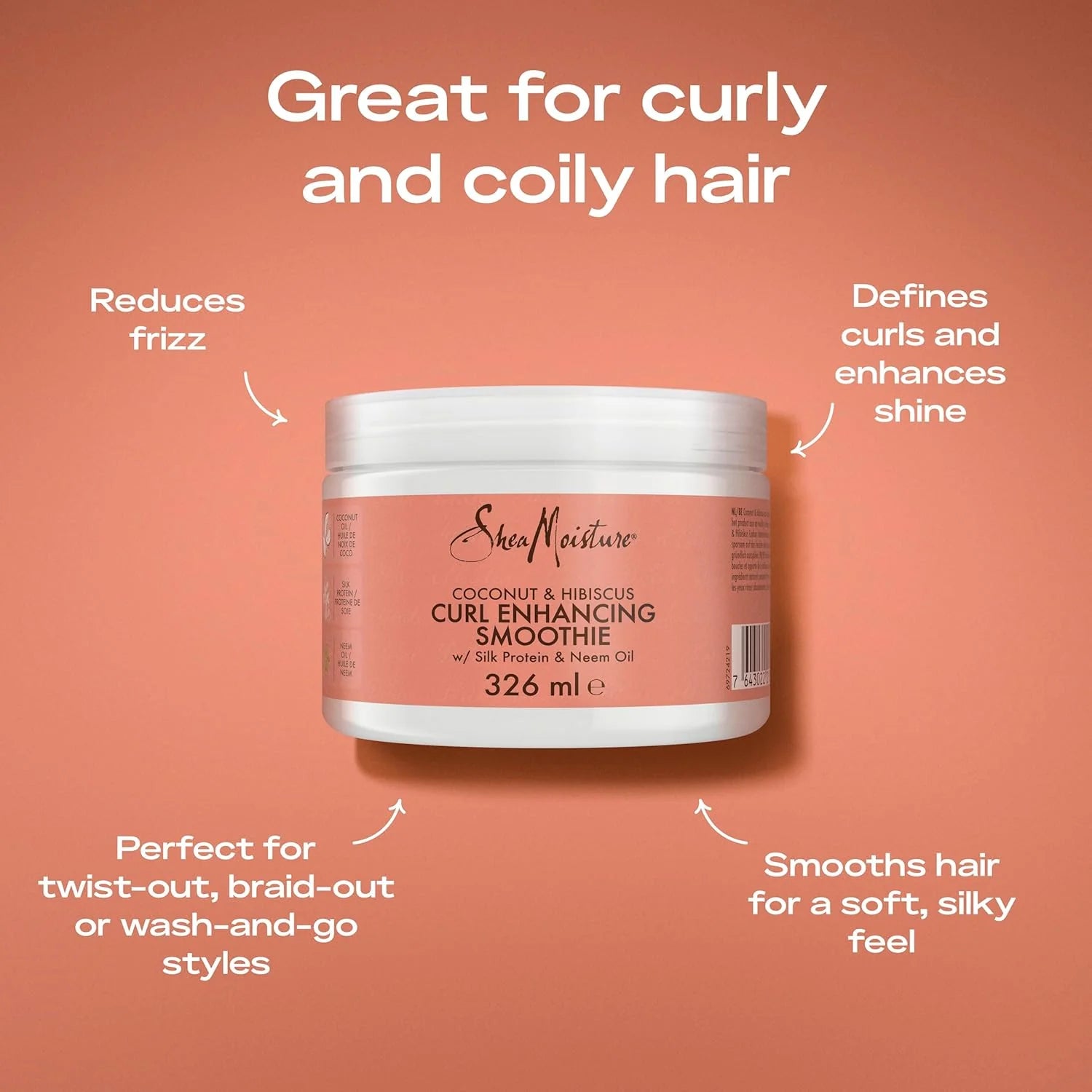 Skäm bort tjockt, lockigt hår med Shea Moisture's Coconut & Hibiscus Curl Enhancing Smoothie, en lyxig formula som använder naturliga och certifierade ekologiska ingredienser för flera fördela...