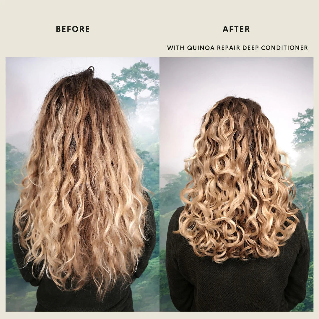 Proteinberikad formula förstärkt med quinoaprotein som bildar en skyddande barriär runt dina lockar och ger kraftfulla essentiella näringsämnen.